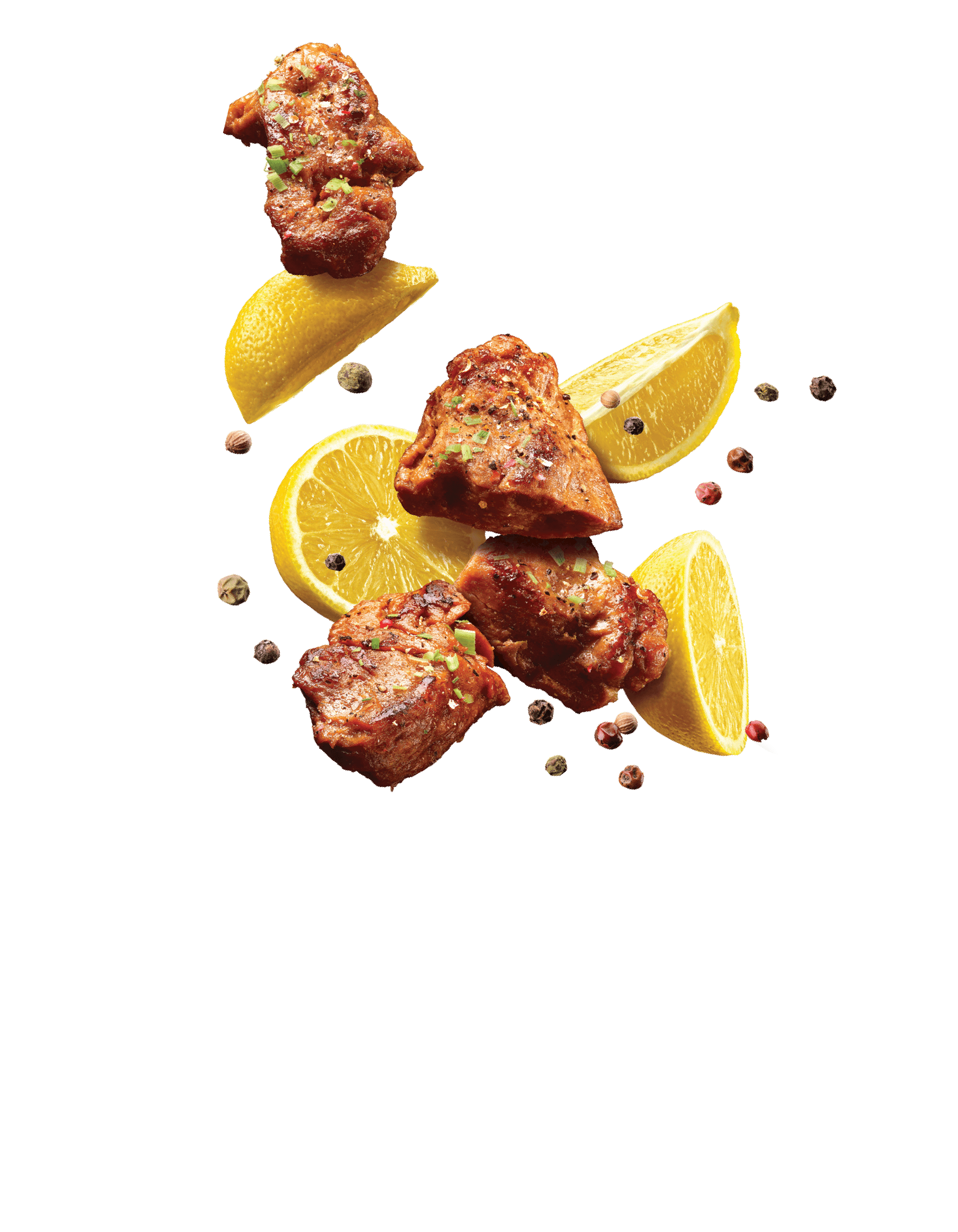Lemon Pepper Seitan crafted with a vibrant citrus blend and cracked pepper.