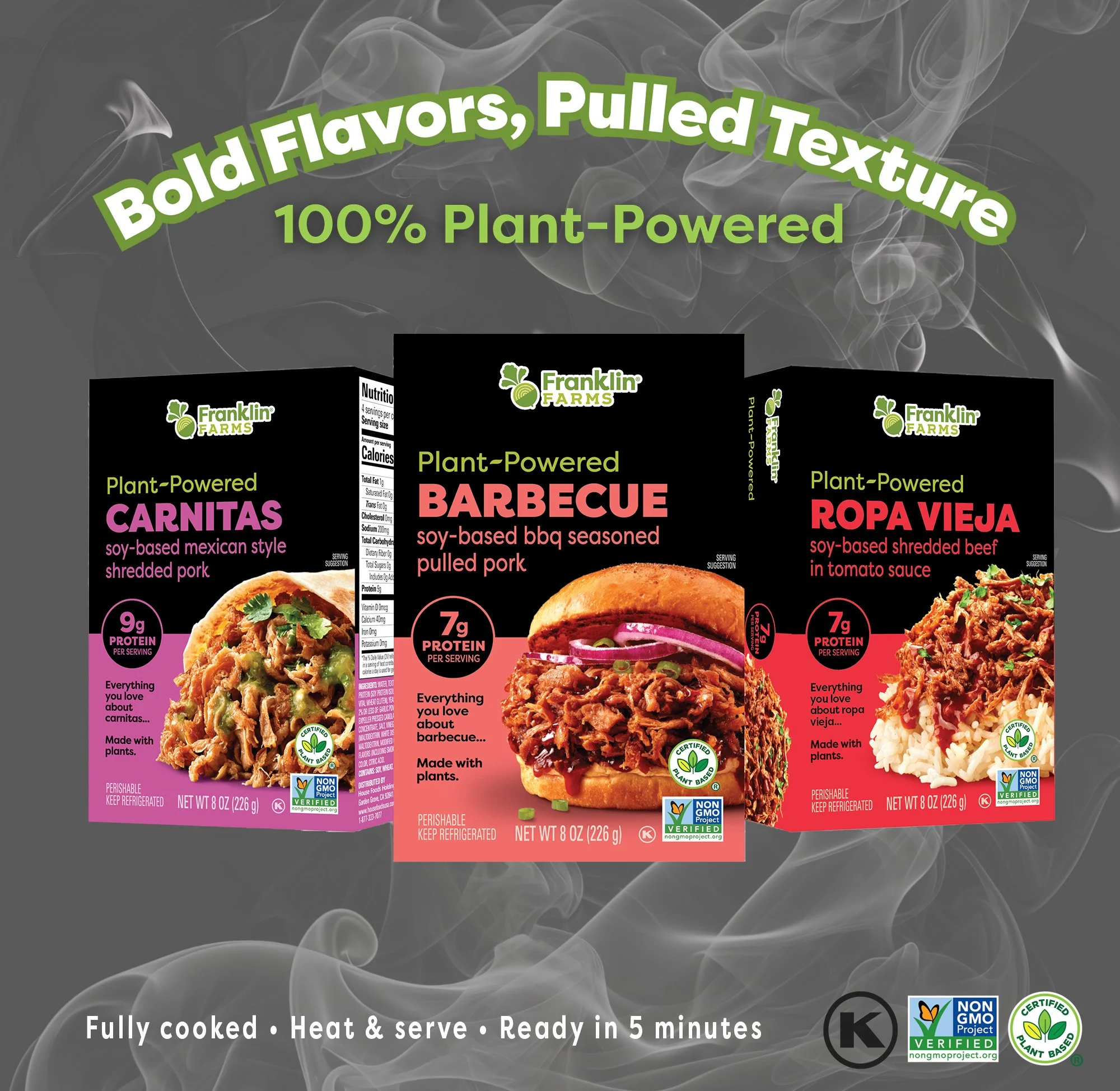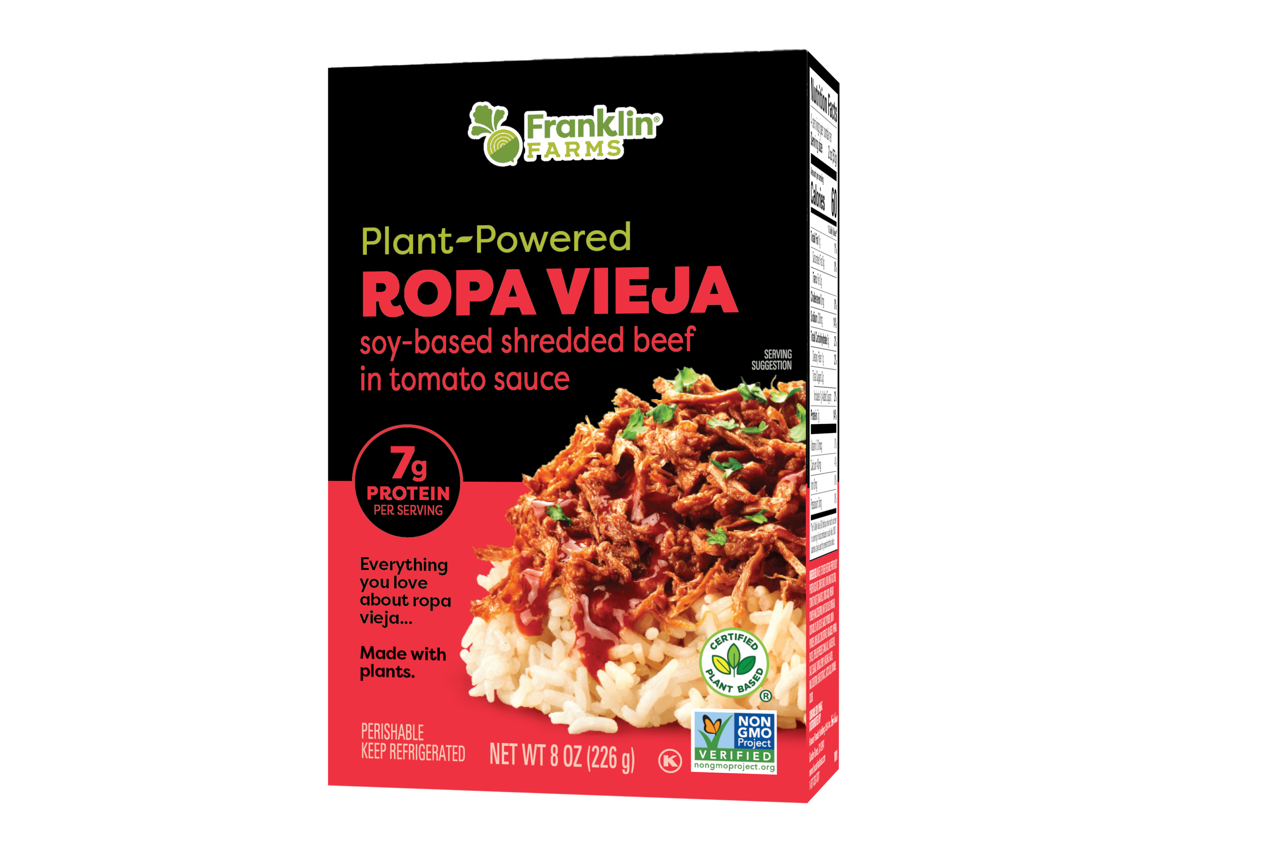 Savor soy-based shredded beef in a rich tomato sauce. Enjoy a meal that brings authentic flavor & 7g of protein per serving.