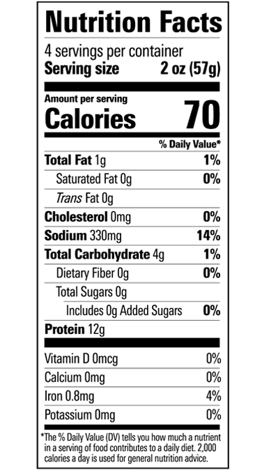 Ingredients: Seitan Water, Vital Wheat Gluten, Soy Sauce Water, Soybeans, Wheat, Salt, Defatted Soy Flour, Garbanzo Bean Flour, Contains 2% Or Less Of: Garlic Powder, Onion Powder, Paprika, Spices, Tomato Powder, Turmeric, Expeller Pressed Canola Oil, Salt, Sugar, Natural Flavor, Yeast Extract. Contains: Soy, Wheat.